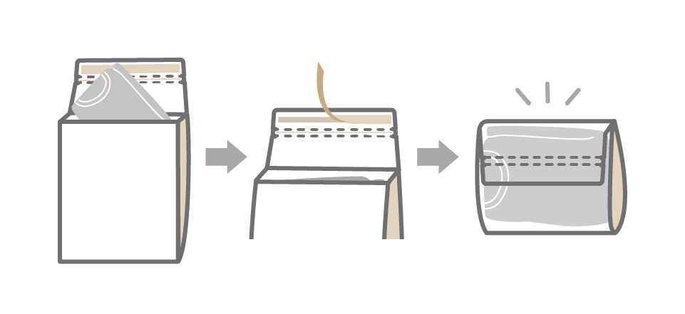 段ボールケースの組み立てや、角底袋をあらかじめ広げる時間・手間はもう必要ありません。ガムテープも不要です。