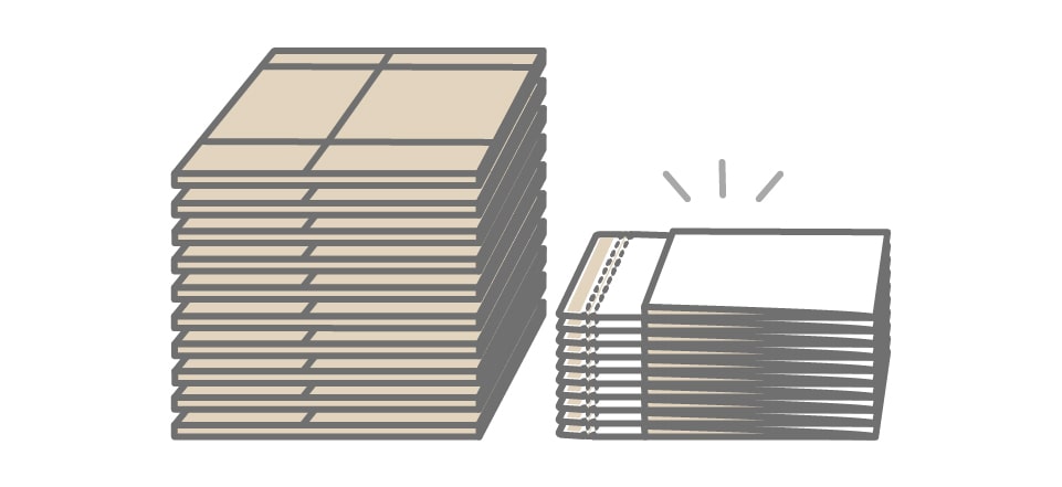 はい。省スペース資材とは言え、それなりに嵩張りますので、できるだけまとまった数量での納入をおすすめいたします。
