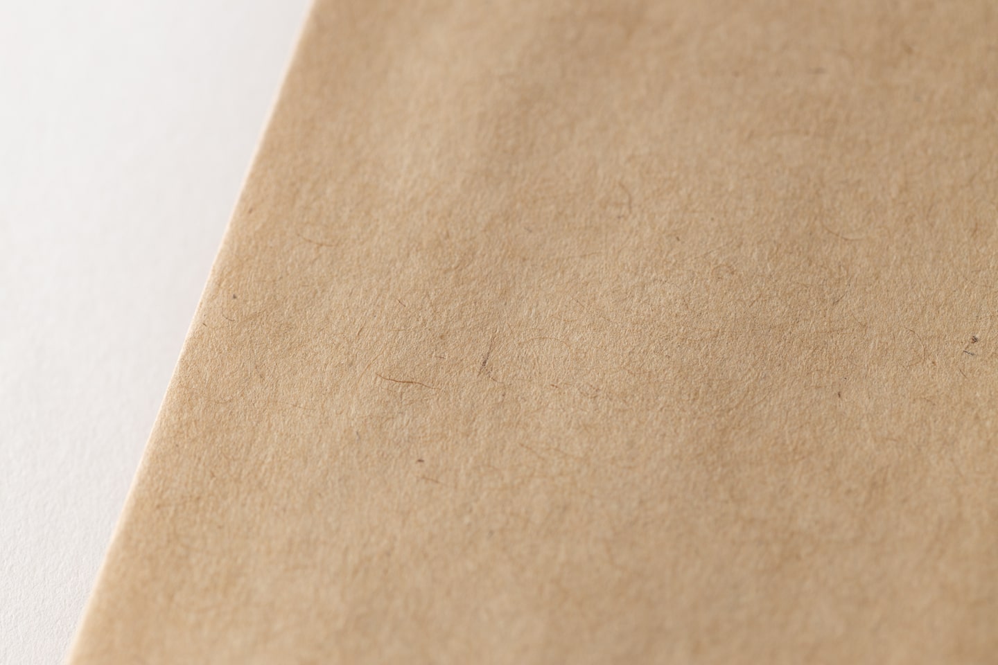 パルプを漂白していない(晒さない)紙で、パルプ本来のダークブラウンの色味・風合いとしっかりとした丈夫な紙質です。