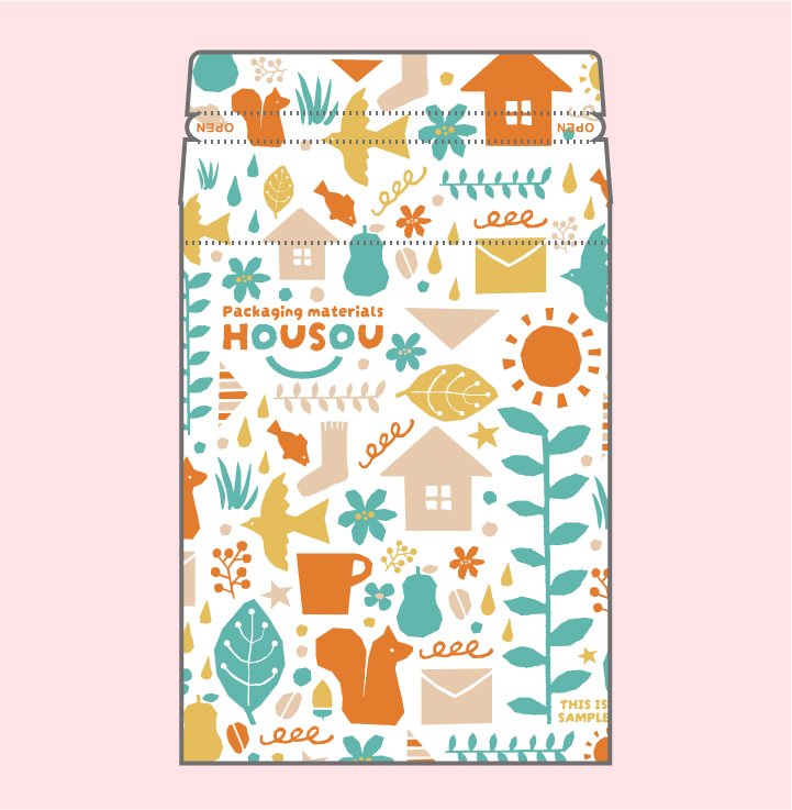 梱包や開封がしやすいなど実用的であることに加え、ロゴなどのワンポイントや全面印刷でパッケージ・包装紙としてもご活用いただけます。サイズ、マチ幅などご希望の仕様でのオーダーメイドも承りますので、ぜひご相談ください。