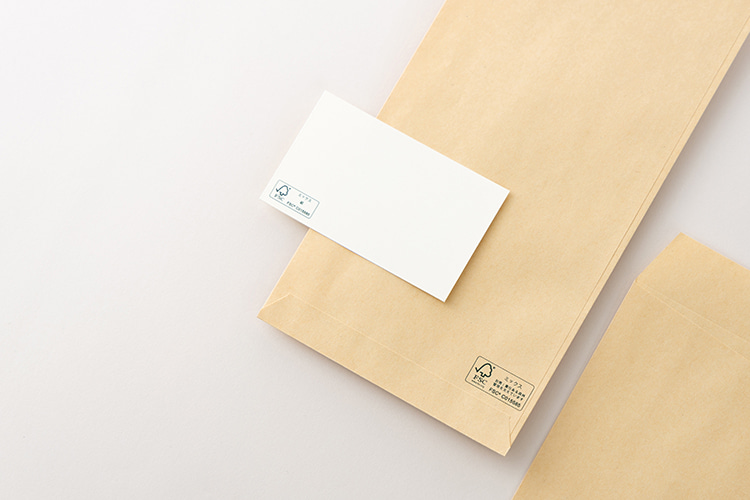 当社では、このFSC認証制度に基づいた認証紙を使用し、封筒・名刺・宅配袋などの各種製品を製造・販売しています。