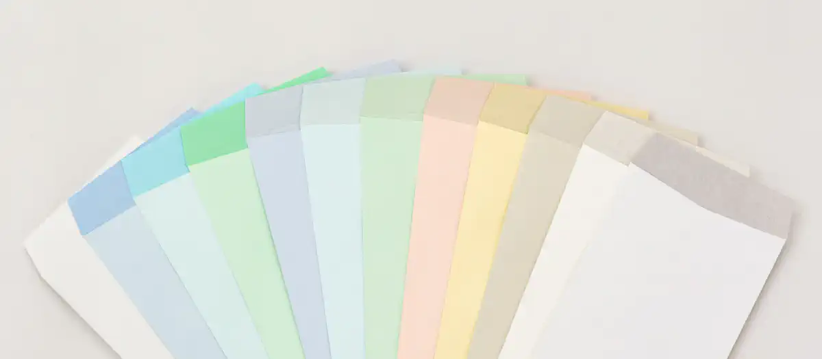 現在では、用途やご要望に応じて、透けないパステルシリーズ、封筒表面と同系色で自然な風合いの透けないパステルナチュラルWシリーズ、さらに撥水機能を備えた透けない撥水封筒など、サイズ・カラー・機能のバリエーションを豊富にラインアップしています。